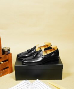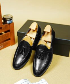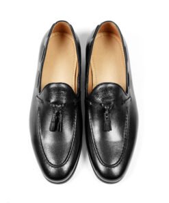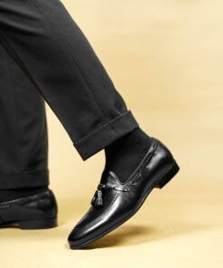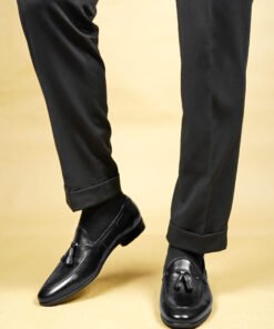 Redefine timeless elegance with these Black Leather Tassel Loafers, a must-have for the refined modern man. Crafted from smooth, high-quality leather, these loafers feature classic tassel accents and clean moc toe stitching for a polished, sophisticated finish.