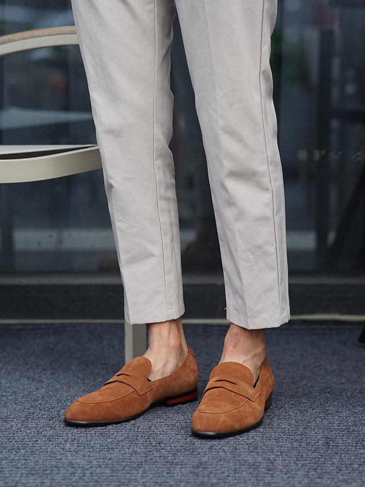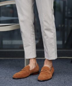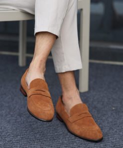 Step into refined casual elegance with these Camel Suede Penny Loafers, a perfect combination of comfort and class. Handcrafted from soft suede leather in a rich camel hue, these loafers deliver a sophisticated yet relaxed look ideal for year-round wear.